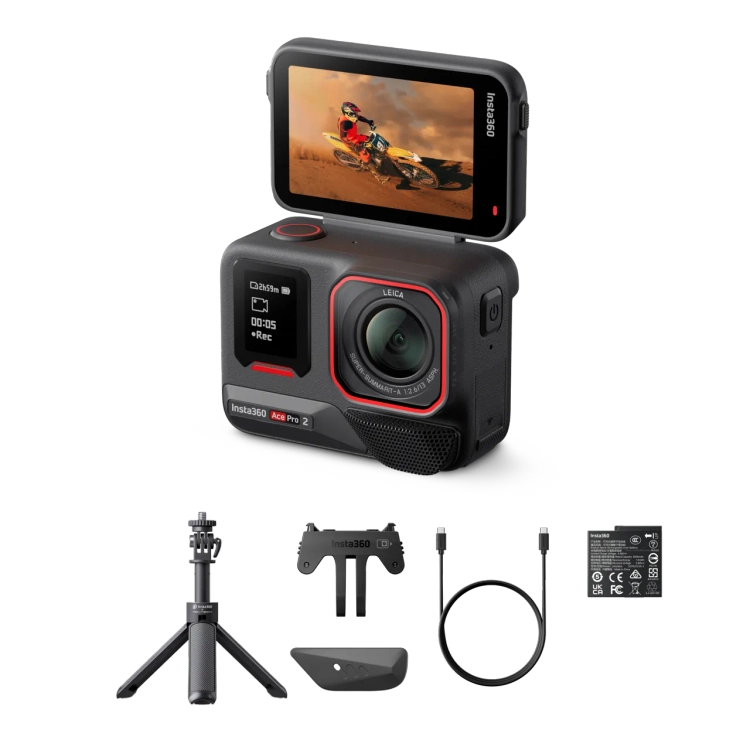 ※ 세트 번들 구성: Insta360 Ace Pro 2 x1, 윈드 가드(카메라에 사전 장착됨) x1, 배터리 x2, 표준 마운트 x1, 마이크 캡 x1, USB-C 케이블 x1, 미니 투인원 삼각대 x1