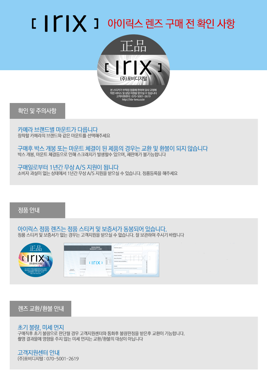| 제조자 | 제조자: IRIX / 수입자:(주)포비디지털 |